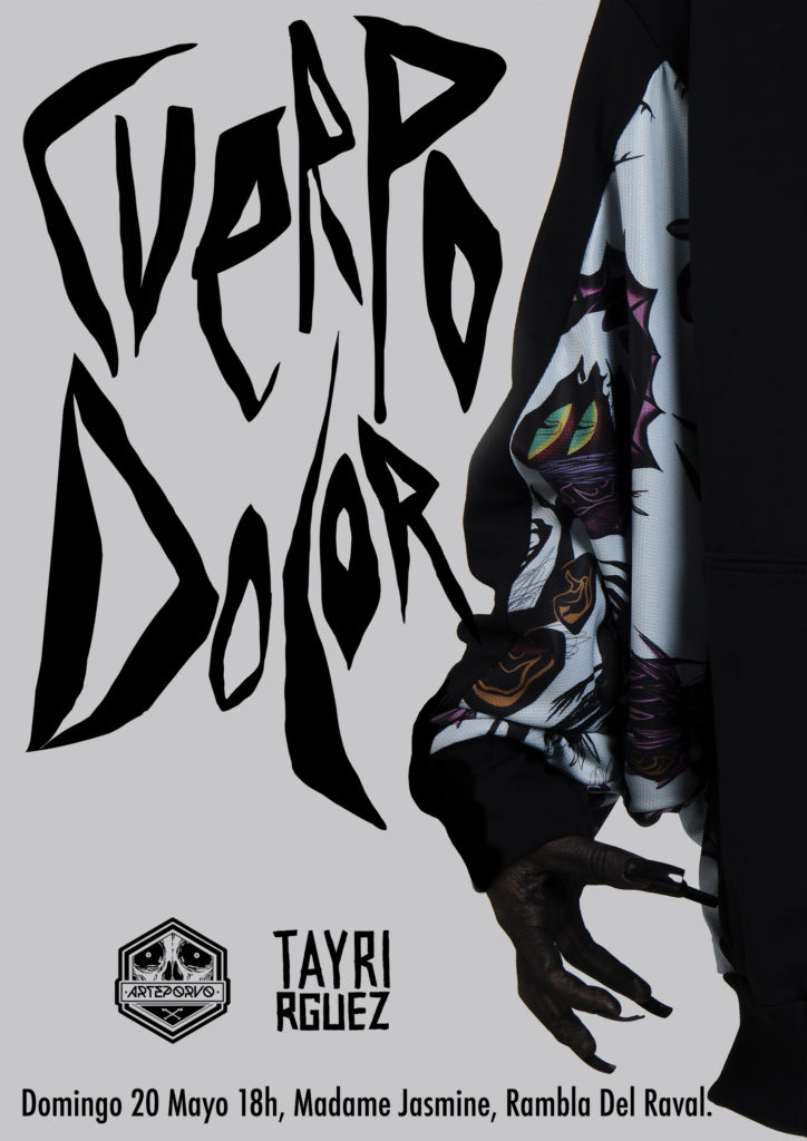 Cartel publicitario del evento presentación de la colección Cuerpo Dolor. Tayri Rodríguez.
