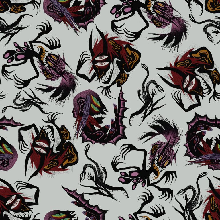 Junto con Arteporvo, han extrapolado el tattoo al diseño y del diseño al ropaje o moda, creando piezas para la colección de carga muy creepy.